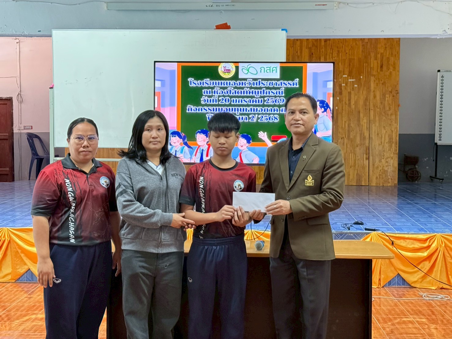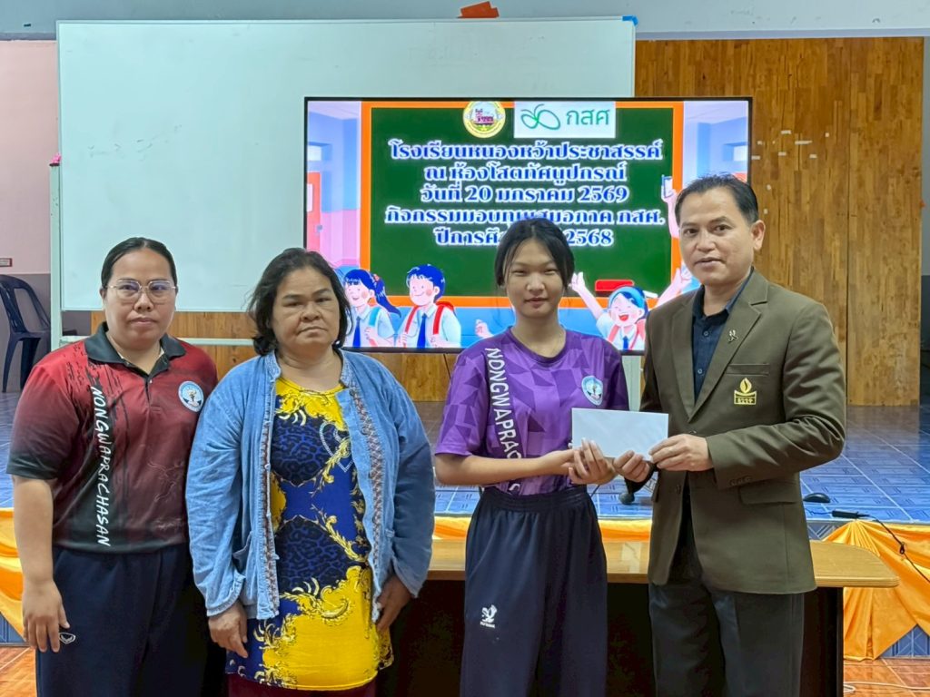 วันที่ 20 มกราคม พ.ศ 2569 นายสิทธาน บุดดีเสาร์รองผู้อำนวยการโรงเรียนหนองหว้าประชาสรรค์มอบทุนการศึกษาให้กับนักเรียนที่ได้รับทุนเสมอภาคตามกิจกรรมมอบทุนเสมอภาค กสศ. ประจำภาคเรียนที่2 ปีการศึกษา 2568 ณ ห้องโสตทัศนูปกรณ์ โรงเรียนหนองหว้าประชาสรรค์   ขอขอบพระคุณท่านผู้ปกครอง ที่เดินทางมาร่วมกิจกรรมในวันนี้